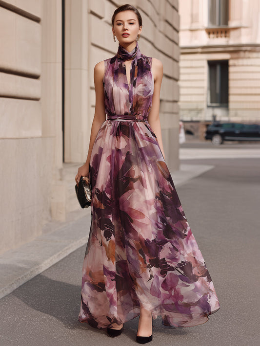Maeyira Brown Floral Print Long Sleeve Mini Dress