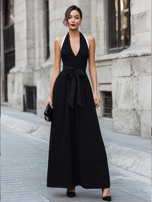 Maeyira Black and White Contrast Mini Dress with Bow Detail