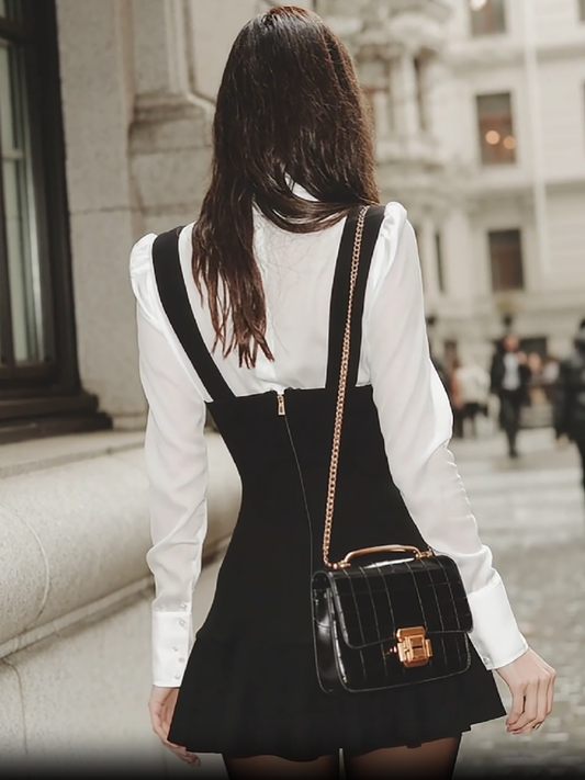 Maeyira Black and White Two Piece Set - Suspender Skirt with Bow Tie